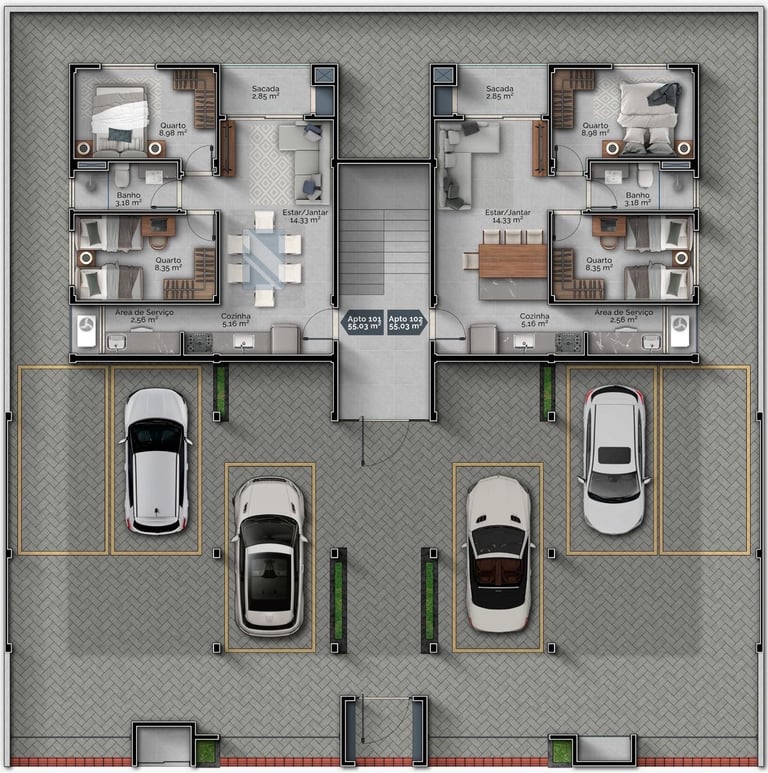 Imagem 4 - Pavimento Térreo - 02 Apartamentos - 06 vagas de garagem cobertas